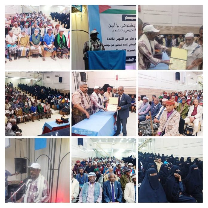 أقامت سكرتارية منظمة الحزب الاشتراكي اليمني بمحافظة أبين، صباح اليوم، حفلاً خطابياً وتكريمياً في قاعة نور للاحتفالات بمدينة زنجبار، إحياءً للذكرى الـ62 لثورة الرابع عشر من أكتوبر المجيدة، والذكرى الـ58 لعيد الاستقلال الوطني في الثلاثين من نوفمبر، والذكرى الـ47 لتأسيس الحزب الاشتراكي اليمني.