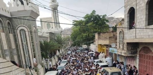 (تعز) – “صحيفة الثوري”: شيّعت حشود كبيرة من المواطنين، اليوم الجمعة، في مدينة تعز، جثمان الطفل أيلول عيبان السامعي (11 عاماً)، في أجواء سادها الحزن، وذلك عقب العثور عليه متوفياً بعد أن جرفته السيول الناتجة عن الأمطار الغزيرة. وأُقيمت الصلاة على جثمان الطفل في جامع السعيد، بحضور آلاف المشيعين الذين عبّروا عن بالغ حزنهم وتعاطفهم … تابع قراءة تعز تشيّع الطفل أيلول السامعي بعد انتشاله من السيول وسط مطالب بإجراءات عاجلة للحد من المخاطر