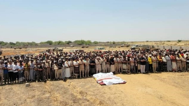 تشييع ضحايا هجوم صاروخي حوثي في حيران بحجة
