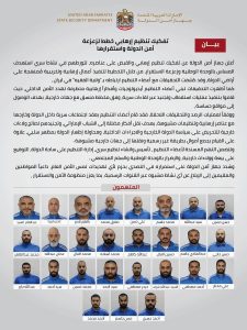 أعلن جهاز أمن الدولة في الإمارات، اليوم، تفكيك تنظيم والقبض على عدد من أفراده، وفق بيان رسمي.