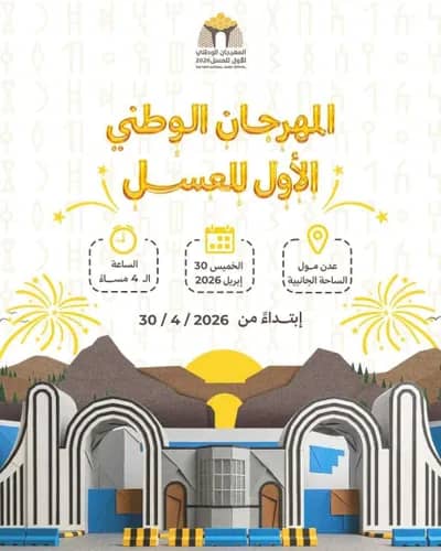 ومن المقرر أن تنطلق فعاليات المهرجان يوم الخميس القادم الموافق 30 أبريل 2026 م في ساحة عدن مول بالعاصمة عدن ابتداء من الساعة الرابعة مساء بمشاركة واسعة من منتجي العسل والجهات المعنية حيث سيتضمن المهرجان عروضا متنوعة لمنتجات العسل وفعاليات توعوية اضافة إلى أجنحة تعريفية تسلط الضوء على جودة وتنوع العسل اليمني.