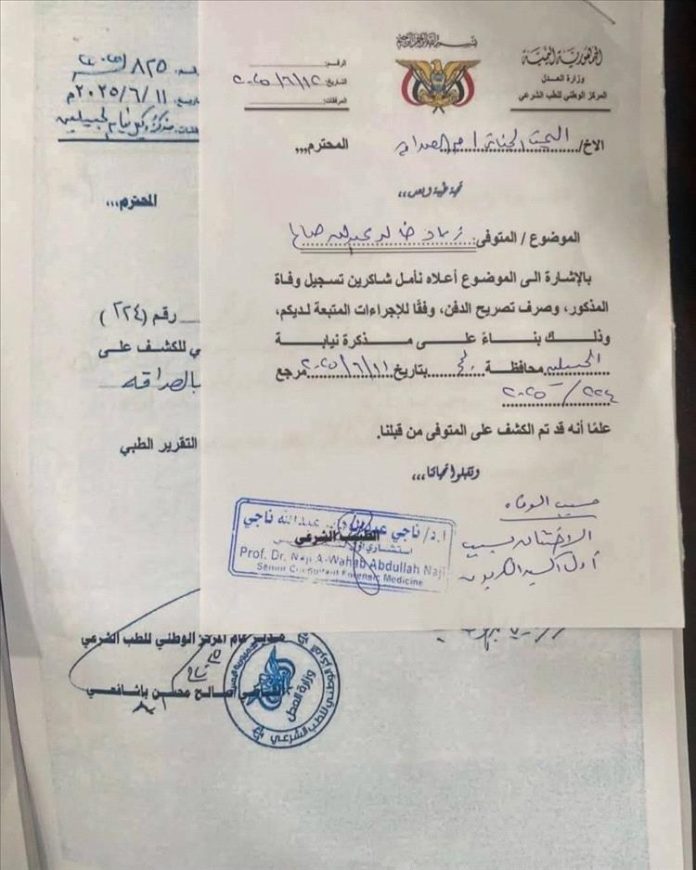 في تطور حاسم بشأن حادثة العثور على أربعة شبان متوفين داخل سيارة من نوع “سوناتا” متوقفة في منطقة بله بمثلث العند بمحافظة لحج، كشف تقرير رسمي صادر عن خبير الطب الشرعي الدكتور ناجي عبدالله ناجي، أن سبب الوفاة يعود إلى “الاختناق بغاز أول أكسيد الكربون”، وذلك عقب معاينته لجثث الأربعة الشبان المتوفين.
