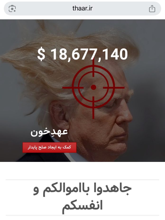 دعت جهات أميركية معنية بإنفاذ القانون إلى التحقيق في موقع إلكتروني إيراني يُدعى “THAAR.IR”، بعد أن نشر محتوى يحرض على اغتيال الرئيس الأميركي السابق دونالد ترامب، ويعرض مكافأة مالية مقابل تنفيذ العملية.
