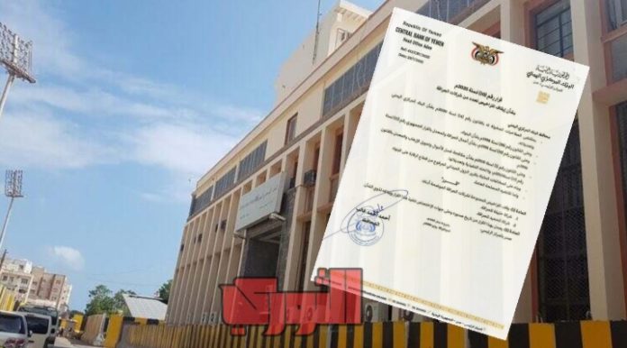 أصدر البنك المركزي اليمني في العاصمة المؤقتة عدن، اليوم الثلاثاء، قراراً جديداً يقضي بإيقاف ترخيص شركتي صرافة، في إطار سلسلة قرارات تهدف إلى تنظيم سوق الصرافة وتحسين الرقابة على النشاط المالي.