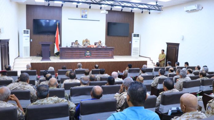 ونقل رئيس الأركان تحايا رئيس مجلس القيادة الرئاسي القائد الأعلى للقوات المسلحة، رشاد العليمي، وأعضاء المجلس، ووزير الدفاع، إلى الحاضرين، مؤكداً على ضرورة تعزيز التنسيق والتعاون بين مختلف تشكيلات وفروع القوات المسلحة، بما يسهم في رفع مستوى الجاهزية والاستعداد لتنفيذ المهام الوطنية والدستورية، وفي مقدمتها معركة استعادة الدولة ومواجهة مليشيا الحوثي والجماعات التخريبية المتطرفة.
