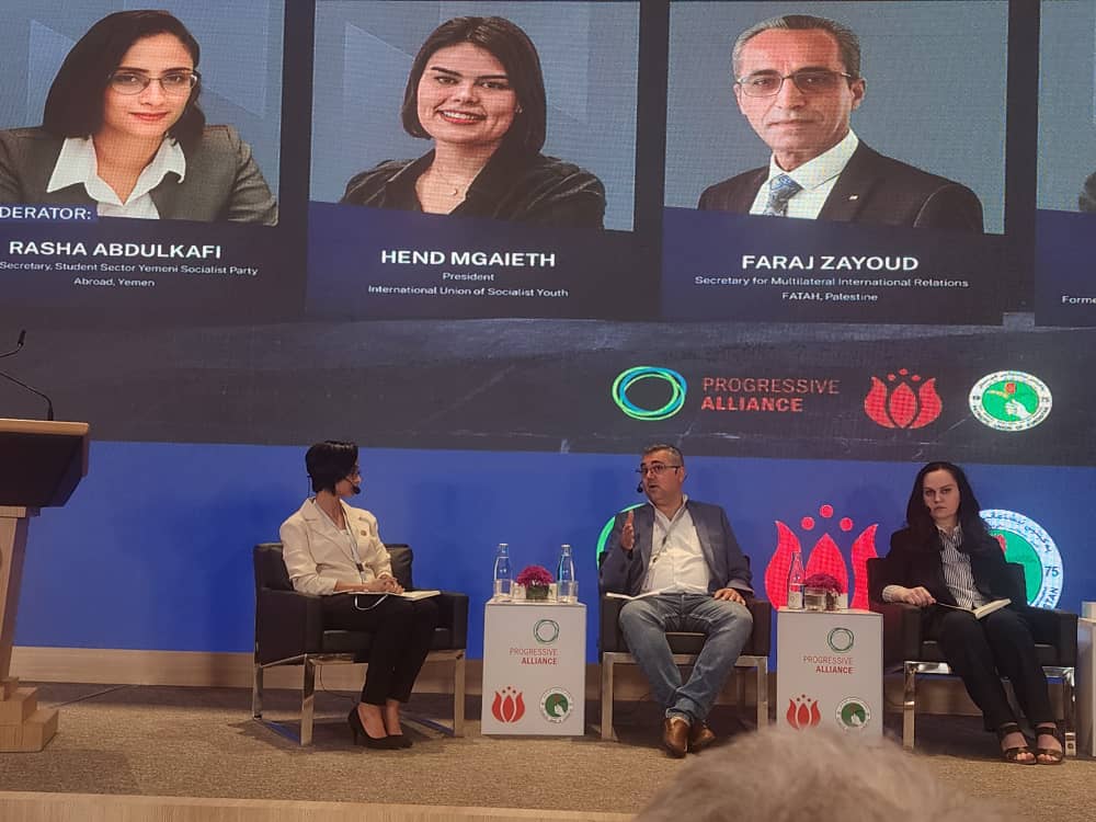 مثّل الحزب الاشتراكي في المؤتمر، الرفيق المهندس وضاح اليمن الحريري، القائم بأعمال رئيس الدائرة السياسية والشؤون الخارجية بالحزب والعضو الاحتياط للحزب في الهيئة العليا للتحالف عضو الهيئة التنسيقية، حيث قدّم مداخلة، كمتحدث رئيس، ركز فيها على قضايا بناء التحالفات الوطنية والإقليمية والدولية ودورها في دعم الديمقراطية وترسيخ سيادة القانون، إلى جانب متحدثين من الحكم الذاتي الكردي في سوريا، وكردستان العراق، والبرازيل، والفلبين.