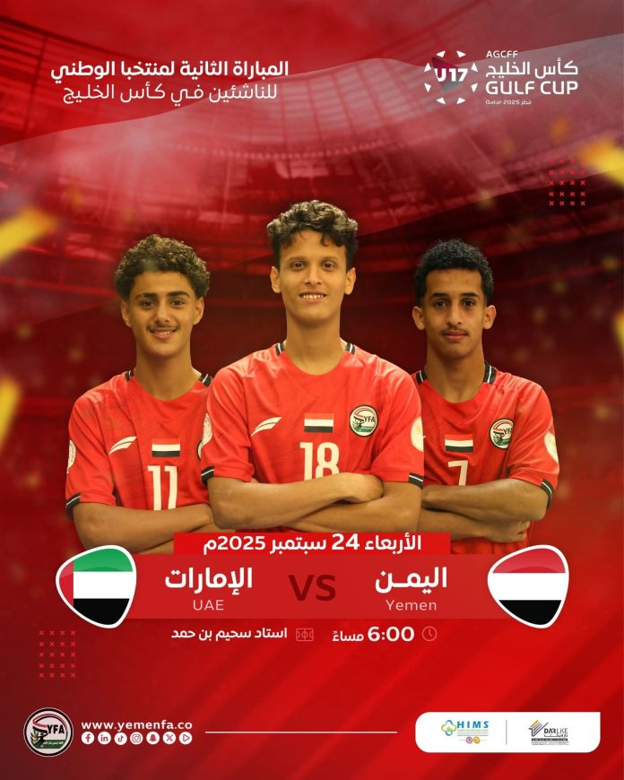 يخوض منتخب اليمن للناشئين، مساء اليوم الأربعاء، مواجهة مصيرية أمام نظيره الإماراتي، ضمن الجولة الثانية من منافسات بطولة كأس الخليج لكرة القدم (تحت 17 عاماً) المُقامة في العاصمة القطرية الدوحة.