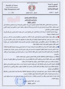 وطالبت النقابة مجلس القيادة الرئاسي والحكومة بانتظام صرف رواتب المعلمين في مناطق نفوذ الحكومة، وضمان زيادتها بما يتناسب مع متطلبات المعيشة، إلى جانب توفير بيئة تعليمية آمنة ومحفزة.