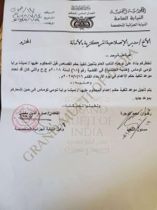 وبحسب مذكرة رسمية صادرة عن وكيل النيابة الجزائية المتخصصة، فقد تم توجيه مدير الإصلاحية المركزية في صنعاء بتأجيل تنفيذ الحكم حتى إشعار آخر، بناءً على توجيهات من النائب العام.