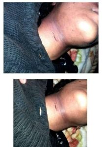 • آثار الرقبة: والأهم، أثبت التقرير الطبي وجود “علامة حمراء” في الرقبة مع جروح متفرقة، و”جرح دام بشكل خط بطول 4 سم في وسط الرقبة”.