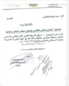 * النيابة تتدخل: يظهر محضر الانتقال من مدير البحث الجنائي أنه تم التبليغ عن وفاة “أمل علي محمد خليل عصار”، وأن الجثة كانت محجوزة لدى إدارة الأدلة الجنائية. لكن محاولة الزوج لدفنها سراً دفعت أسرتها للتحرك وإيقاف الإجراء قبل فوات الأوان، والمطالبة بإعادة الجثة إلى الثلاجة وفحصها.